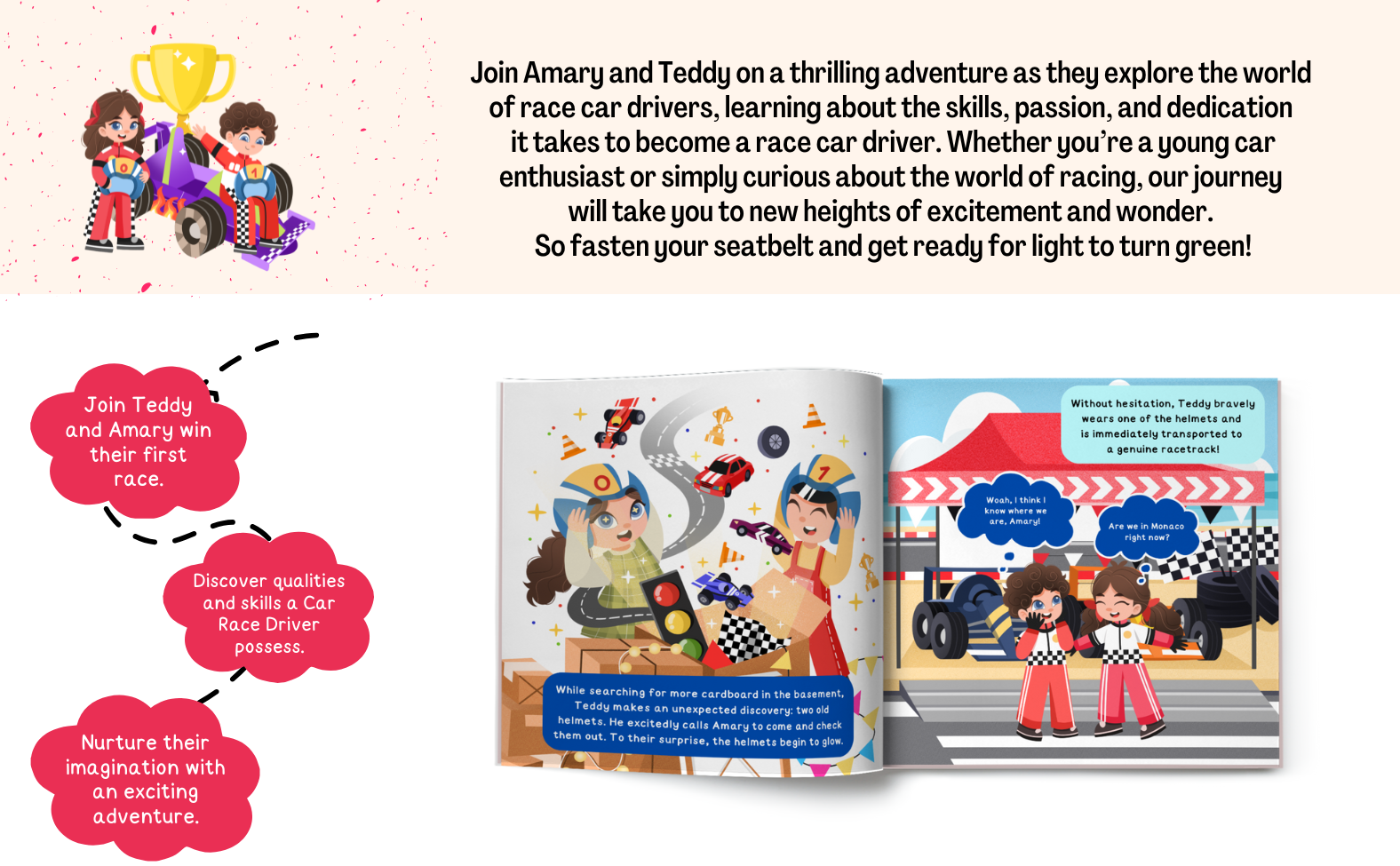 Join Teddy on a thrilling adventure as he travels through space to the exciting world of race car driving! When he first set eyes on a race track, Teddy knew he was destined to be a race car driver. With his love for cars and a burning passion for winning, he sets out on an incredible journey to make his dream a reality.
