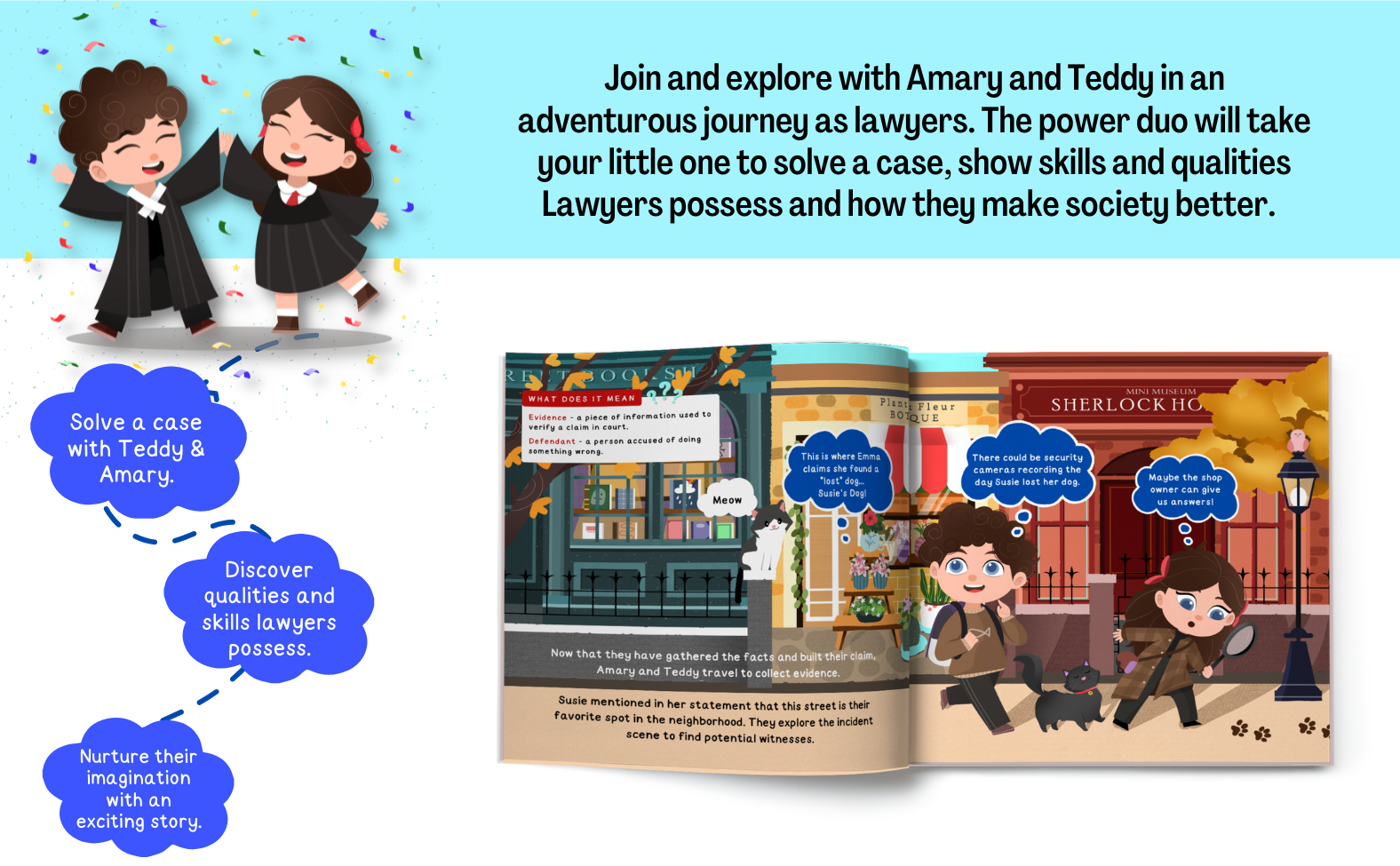 When Amary and Teddy hear about their friend Susie's stolen dog, they embark on an adventure to bring justice to society. Follow them as they solve the case and show the skills and qualities that lawyers possess, making society a better place.