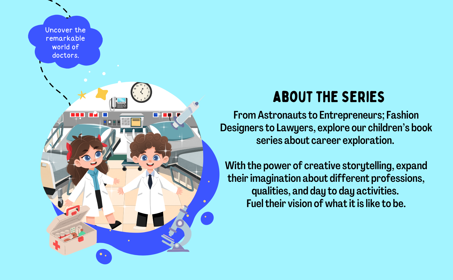 This book encourages your child to dream big and consider a career in medicine by fostering a love of learning and exploration. Get your copy today and inspire your little one to become the doctor they always wanted to be!