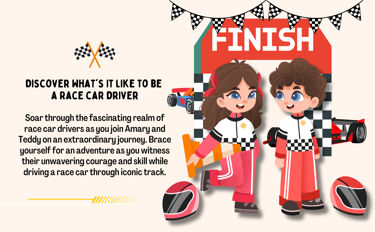 Join Teddy on a thrilling adventure as he travels through space to the exciting world of race car driving! When he first set eyes on a race track, Teddy knew he was destined to be a race car driver. With his love for cars and a burning passion for winning, he sets out on an incredible journey to make his dream a reality.