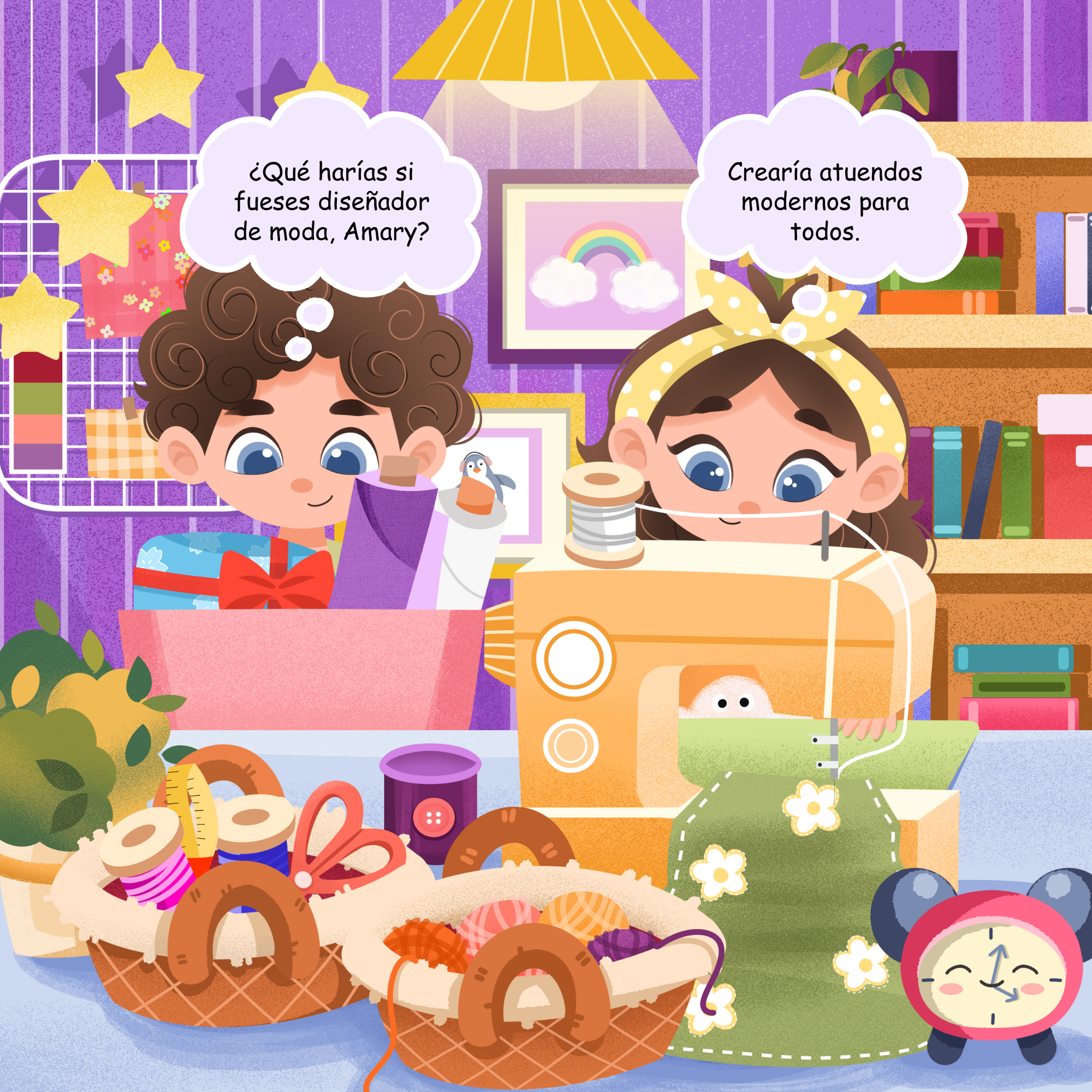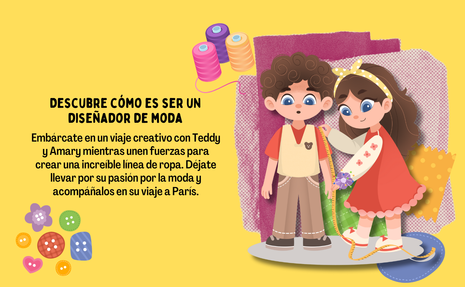 ¡Acompaña a Amary y Teddy en una aventura súper creativa mientras descubren cómo es ser diseñador de moda! Amary siempre ha soñado con trabajar en la industria de la moda. Con la ayuda de su hermano Teddy, explora el mundo de la moda, aprendiendo desde cómo dibujar diseños hasta elegir telas y crear vestidos.