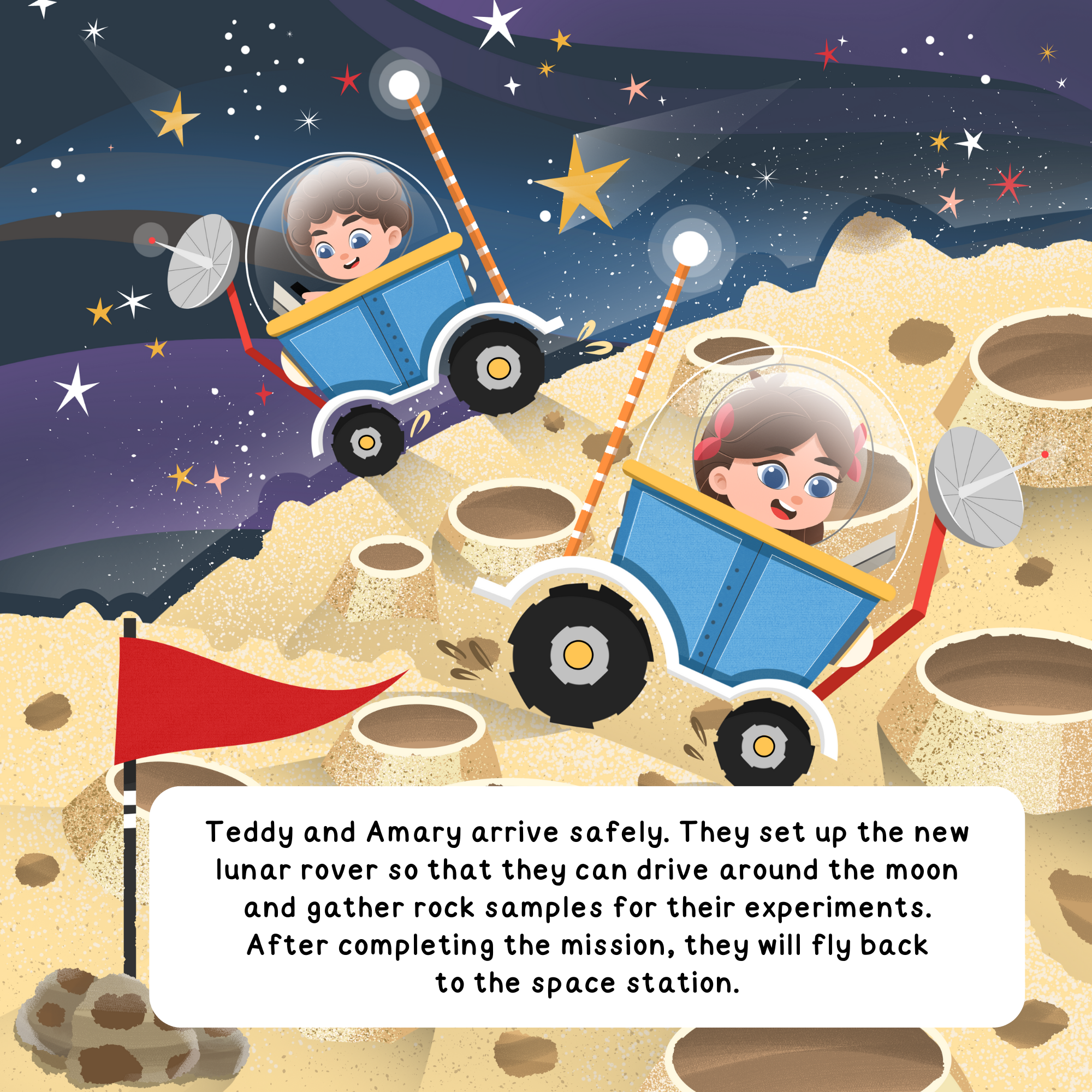 After watching the Atlas-12 rocket launch on live television, Amary and Teddy's interest in space exploration was sparked. With a magical gift from their grandfather, they embark on an incredible journey of training at the Johnson Space Center, repairing a satellite, and operating a rover on the moon.